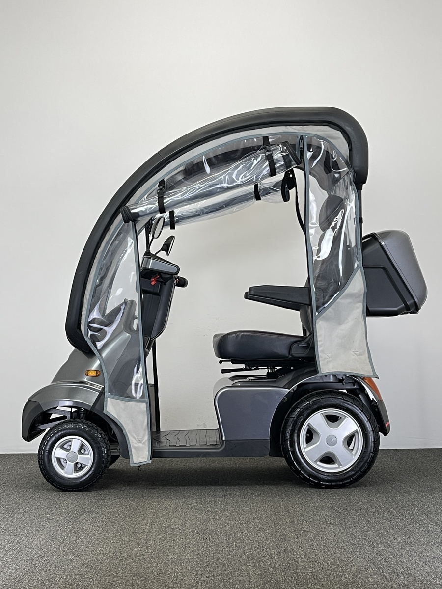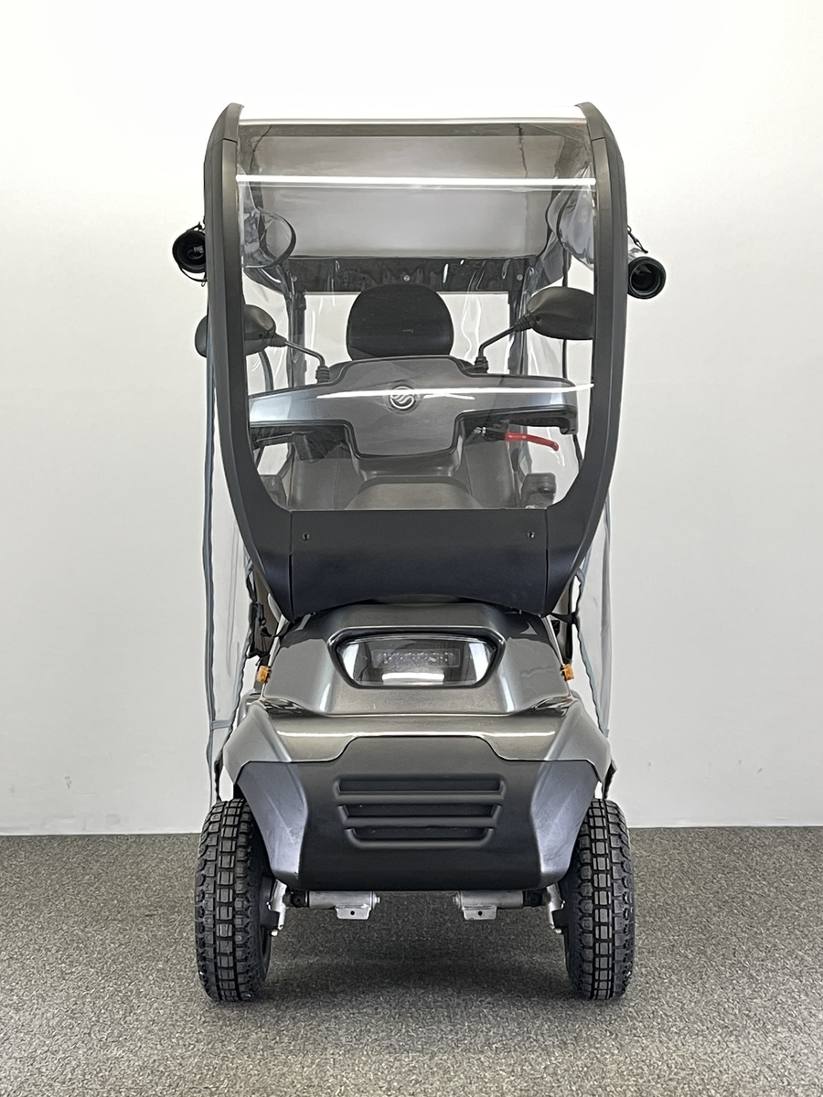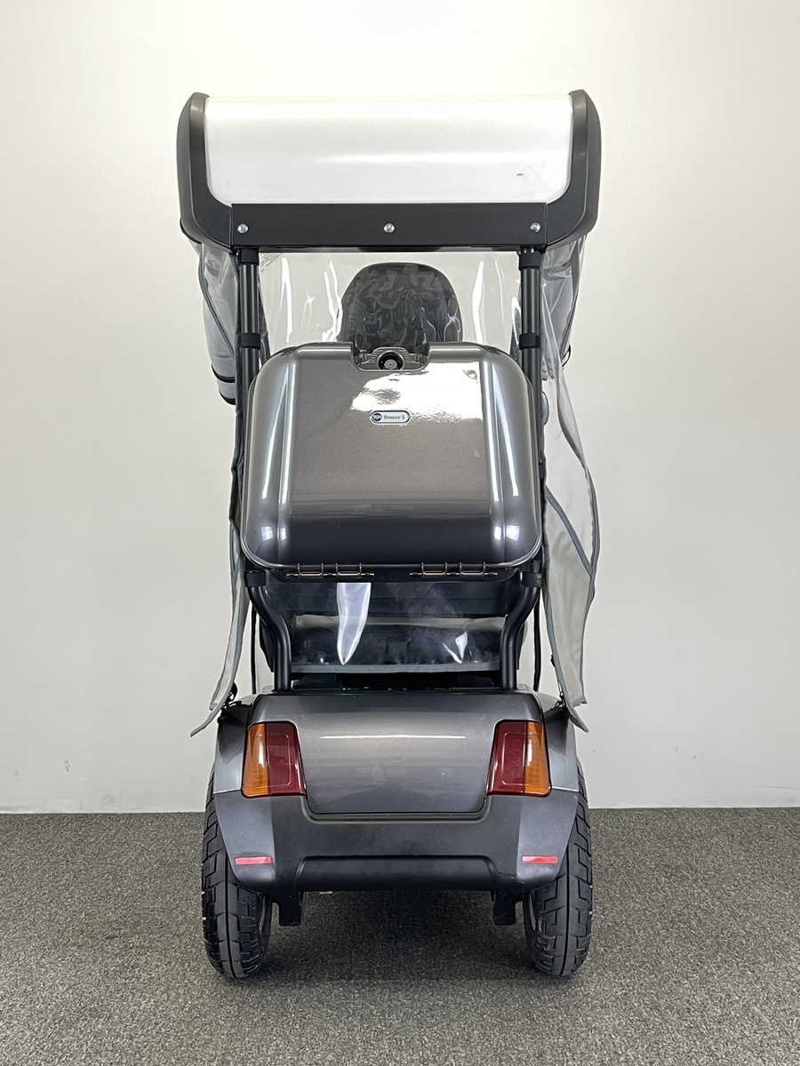 It has all the features of it’s excellent sibling, the Breeze S3, but is based on a 4 wheeled platform for extra stability and off-road capability. The Breeze S4 is capable of being fitted with an excellent purpose-built hard canopy with an integrated roll-cage to keep the rain off and keep you dry in bad weather. A spacious colour-matched lockable rear box and lockable flip-out front basket are standard on all Breeze scooters, giving a lot of storage space and making them great for shopping trips.