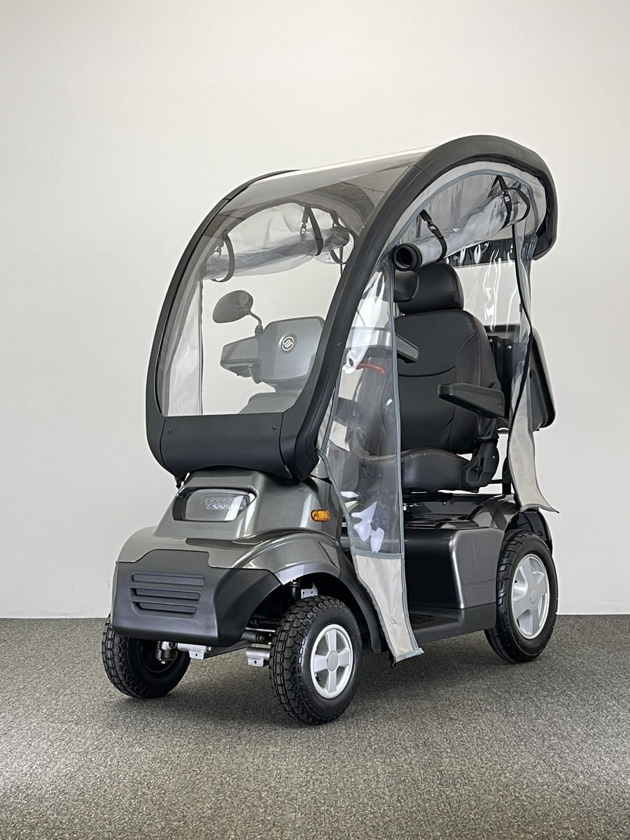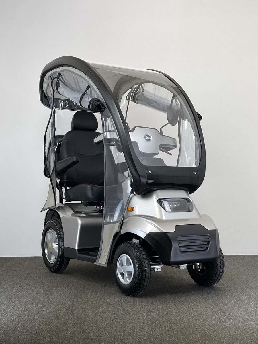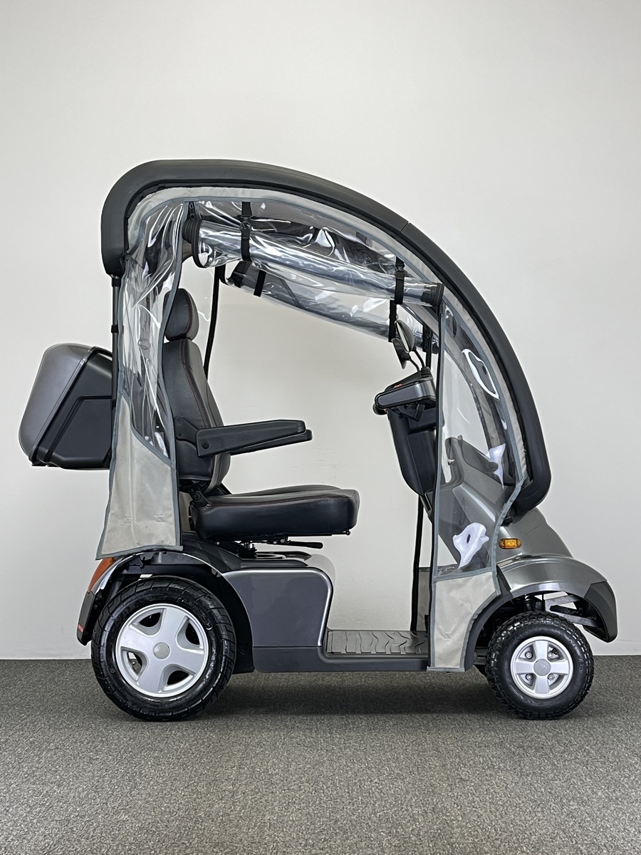 It has all the features of it’s excellent sibling, the Breeze S3, but is based on a 4 wheeled platform for extra stability and off-road capability. The Breeze S4 is capable of being fitted with an excellent purpose-built hard canopy with an integrated roll-cage to keep the rain off and keep you dry in bad weather. A spacious colour-matched lockable rear box and lockable flip-out front basket are standard on all Breeze scooters, giving a lot of storage space and making them great for shopping trips.